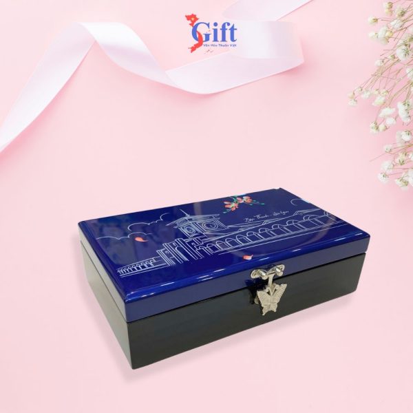 Hộp Trang Sức Sơn Mài Nhỏ Màu Xanh Vẽ Chợ Bến Thành SGSMHD1220-3