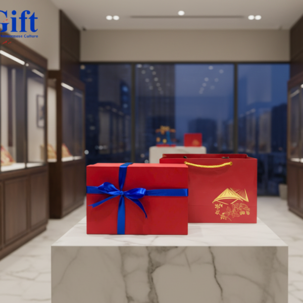 Gift Set: Silk Scarf with Ben Thanh Market Design (Orange) & Black Jewelry Box SG01.1