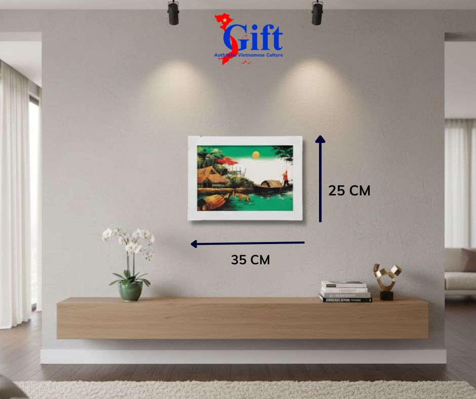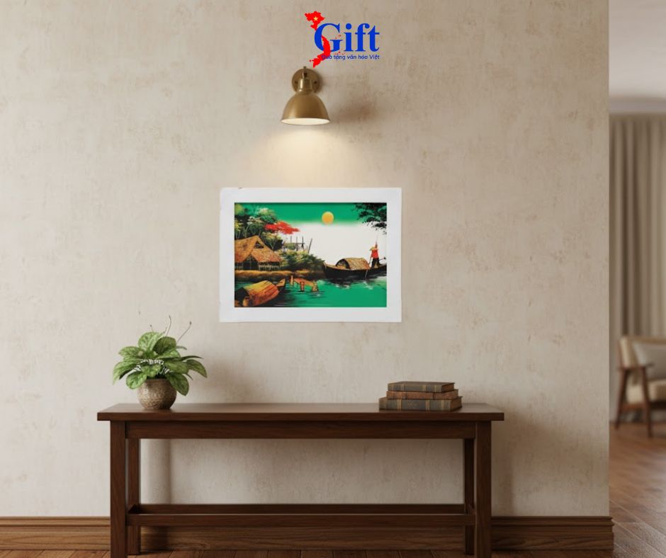 The SGTSM2030 Green-Background Countryside Lacquer Painting is the perfect gift for expressing appreciation to partners, VIP clients, or for corporate events. More than just a decorative piece, it conveys a sophisticated message, showing respect for Vietnamese culture and a commitment to sustainable collaboration. The blend of traditional artistry and modern design makes it a truly valuable gift.