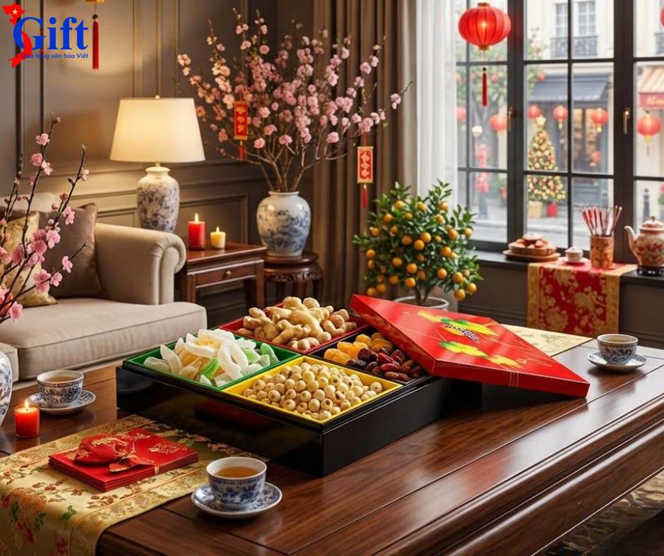Vietnam’s traditional Lunar New Year is never complete without the five-fruit tray and the festive confectionery box. The SGHM04 four-compartment square lacquered treat box is considered the heart of the living room during Spring. More than just a container for sweets, it is an artistic centerpiece symbolizing reunion, prosperity, and good fortune. This makes it an exceptional and meaningful New Year gift for family members or esteemed business partners.