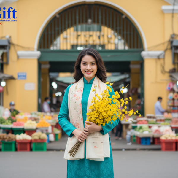 The Hand-Painted Bến Thành Market Silk Scarf & SGIFT Gift Box is a bespoke creation — where the essence of Vietnamese craftsmanship meets contemporary aesthetics.