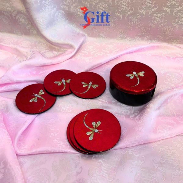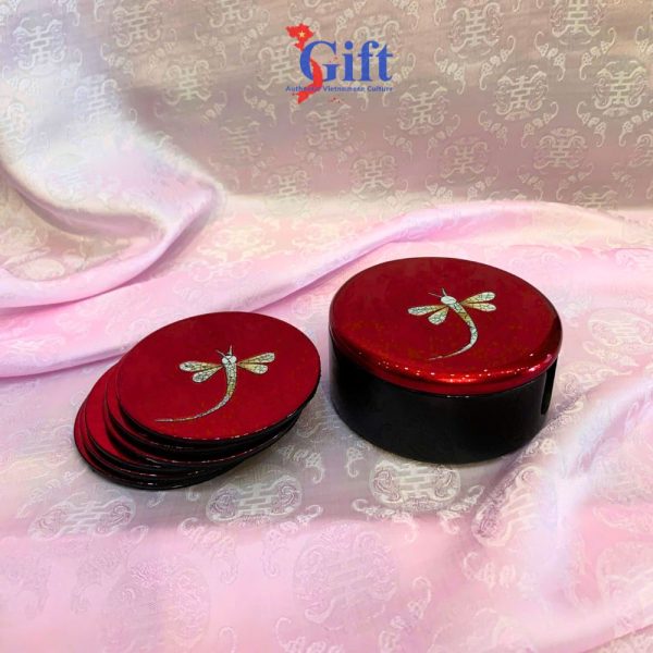 The red dragonfly eggshell inlay lacquer coaster is a product that embodies the rich cultural values of Vietnam, combining traditional lacquer craftsmanship with an elegant dragonfly motif. This coaster not only protects table surfaces but also serves as a refined decorative accent, adding a touch of sophistication and artistry to any space.