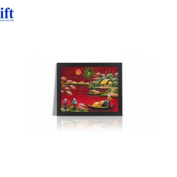 The red-background countryside lacquer painting with black frame TSM3040/frame is the perfect choice. With its ideal size of 30 x 40 cm, this artwork is not just a decorative piece—it opens a window into the peaceful, rustic beauty of the Vietnamese countryside.