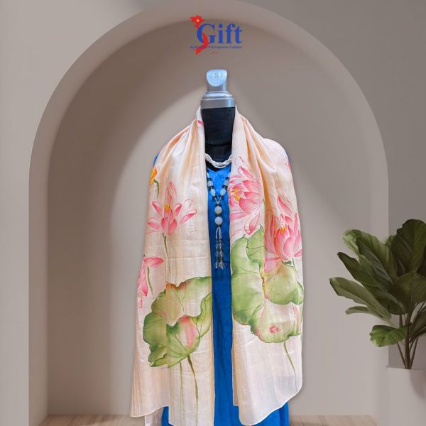 Ha Dong Silk Scarf with Lotus Painting and Red Gift Box Premium gift bag SGPT70180/7