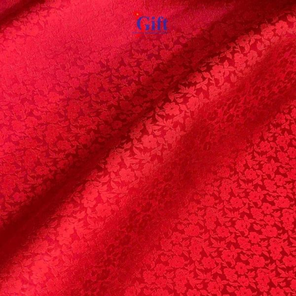 Bright Red Ao Dai Fabric with Thọ Dơi Pattern Green Box Premium Gift Bag Set SGLNLTD1.1