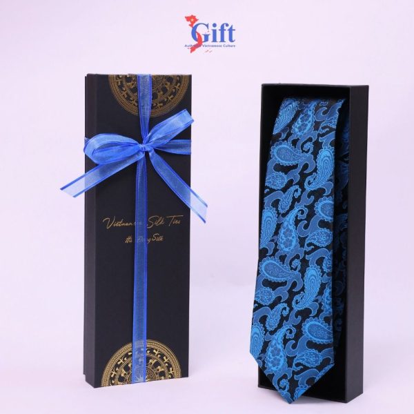 Silk Tie with Peacock Feather Pattern in Black Box SGCRV11-1