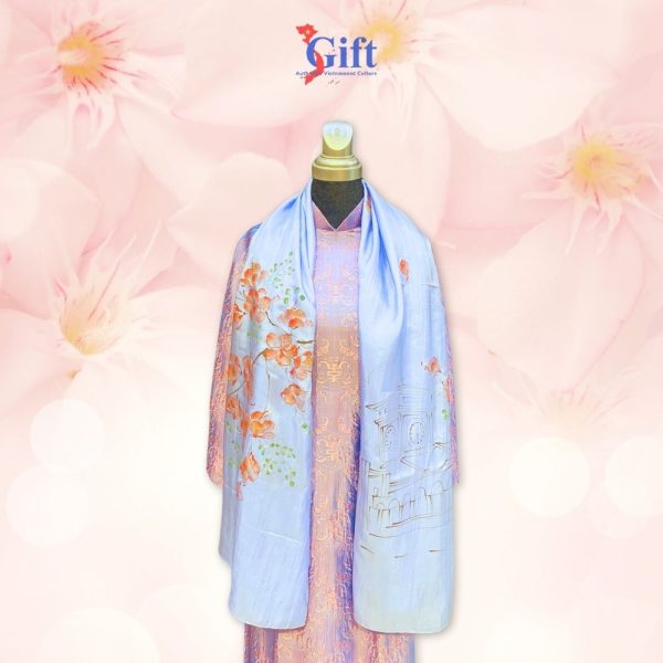 Khăn Lụa Tơ Tằm Vẽ Chợ Bến Thành Màu Xanh Da Trời Hộp Đỏ Túi Quà Tặng SGPT70180/10.4