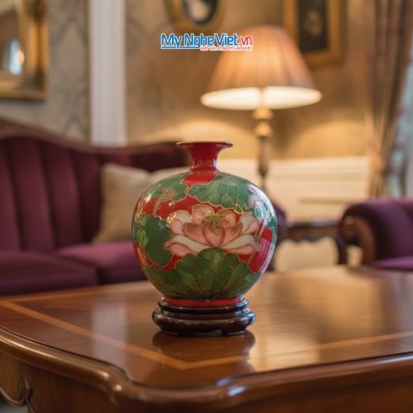 Điểm nhấn của chiếc bình là họa tiết hoa sen – biểu tượng của sự thanh cao và thuần khiết trong văn hóa Việt. Sự kết hợp giữa kỹ thuật vẽ tay tinh xảo và đắp nổi tỉ mỉ mang đến vẻ đẹp quyền quý.