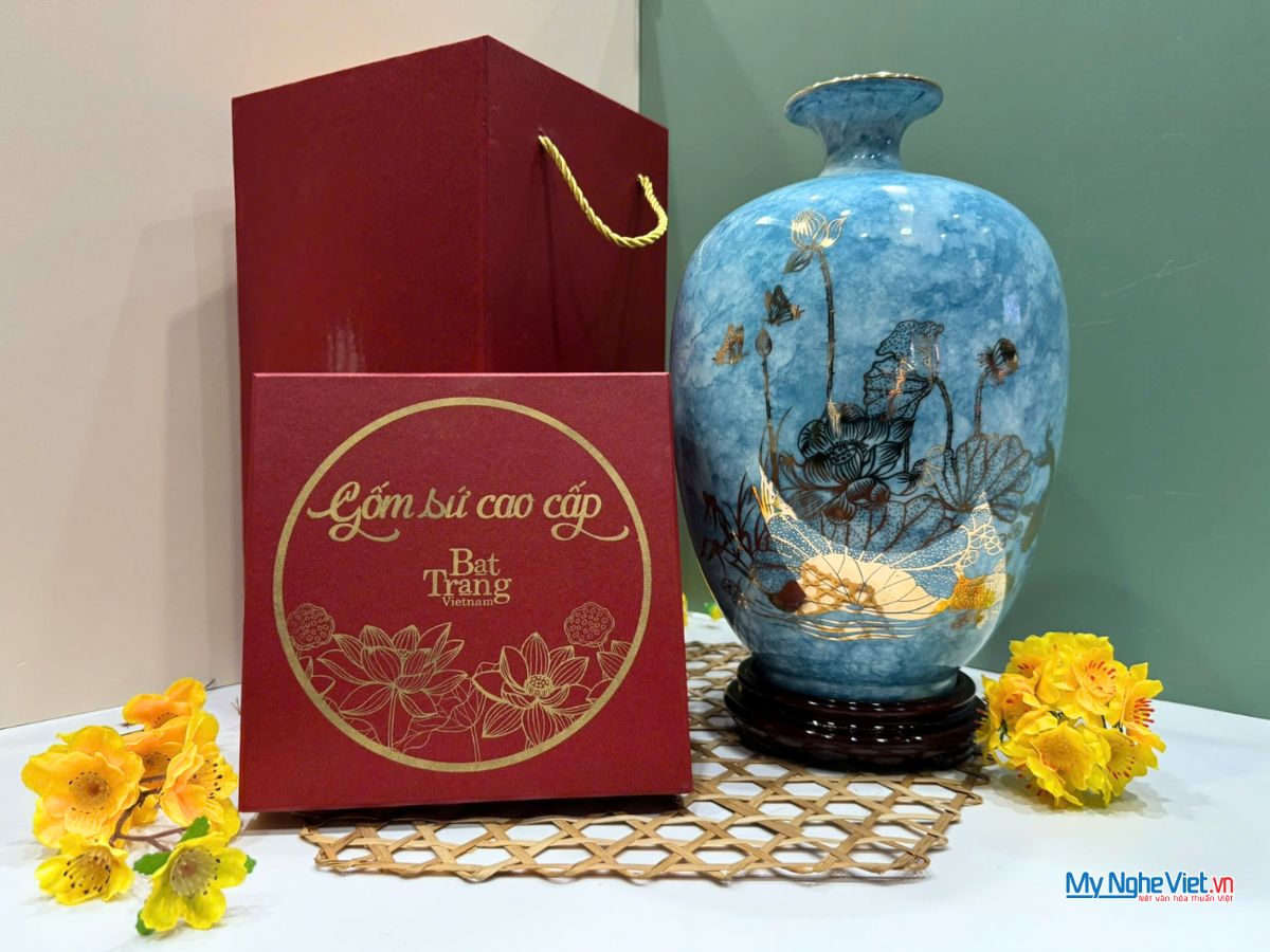 - Chất liệu gốm sứ cao cấp: Các bình thu lộc thường được làm từ gốm sứ Bát Tràng hoặc các làng gốm nổi tiếng khác, với nước men bóng mịn, bền đẹp theo thời gian.