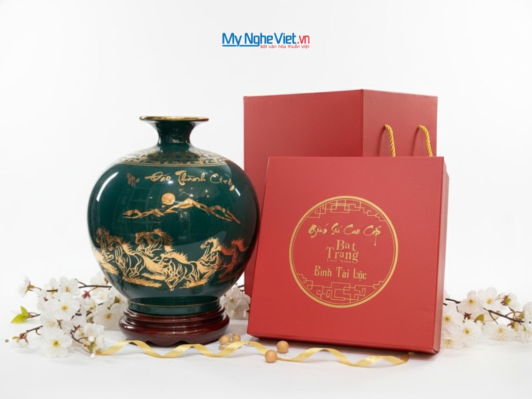 Gốm sứ Bát Tràng – đại diện cho tinh hoa làng nghề truyền thống Việt Nam – luôn là lựa chọn hàng đầu cho những ai tìm kiếm sản phẩm chất lượng cao, mang đậm giá trị văn hóa và phong thủy. Với lịch sử hàng trăm năm, Bát Tràng đã chắt lọc nên quy trình sản xuất độc đáo, tạo ra những tuyệt tác vượt thời gian. Trong đó, chiếc bình thu tài hút lộc nổi bật như một tuyệt tác, đặc biệt là phiên bản Bình Thu Tài Hút Lộc Đông Sơn Kim Bảo Vẽ Nhị Cảnh đầy ý nghĩa.