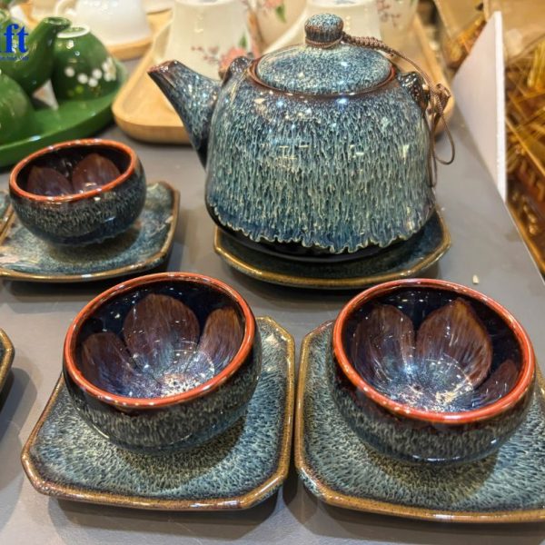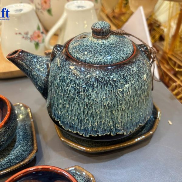 Mẫu bình trà đẹp Bát Tràng này nổi bật nhờ công nghệ Men Hỏa Biến huyền thoại.