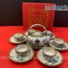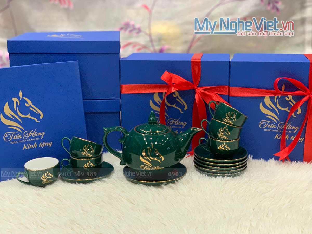 Bộ bình trà ( ấm chén) men xanh cổ vịt in logo Tiến Hùng HDTH01
