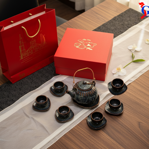 - Quà tặng Doanh nghiệp: In logo lên bộ ấm chén. Dùng làm quà tri ân khách hàng, đối tác, quà sự kiện. Sự độc đáo của men hỏa biến thể hiện sự trân trọng đặc biệt.