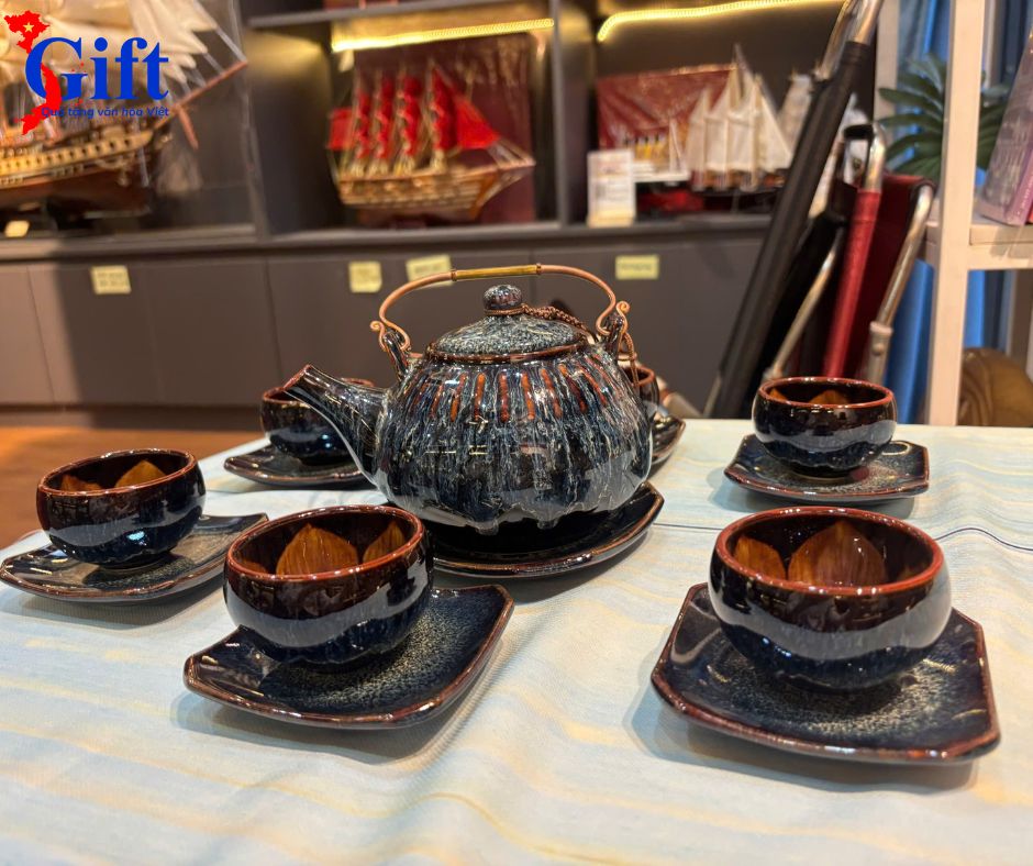 Bộ ấm chén Bát Tràng men hỏa biến là món quà tặng ý nghĩa và đẳng cấp: