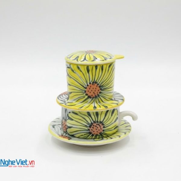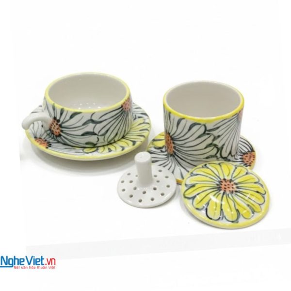 Sản phẩm phin cà phê gốm Bát Tràng chinh phục khách hàng không chỉ bằng chất lượng mà còn bởi sự tinh tế và tỉ mỉ trong thiết kế. Mỗi chiếc phin là một tác phẩm nghệ thuật, từ các họa tiết vẽ tay truyền thống như hoa sen, phong cảnh làng quê, đến những đường nét hiện đại, tối giản.