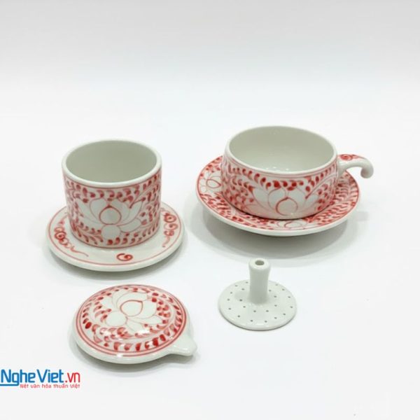 Bộ sản phẩm bao gồm: 01 Phin, 01 Tách, 01 Dĩa Kê Coffee, 01 Hộp quà tặng cao cấp