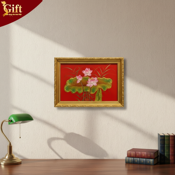 Bộ tranh sơn mài hoa sen nền đỏ – Đẳng cấp quà tặng Việt