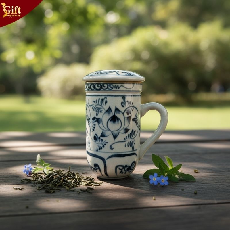 Cốc pha trà gốm sứ Bát Tràng vẽ sen xanh là dòng quà tặng kết hợp giữa tính ứng dụng cao và giá trị thẩm mỹ. Sản phẩm phù hợp dành tặng khách hàng, đối tác hoặc sử dụng trong môi trường văn phòng, giúp doanh nghiệp thể hiện sự chỉn chu và tinh tế trong từng chi tiết.