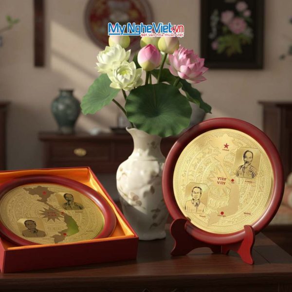 Đĩa đồng khắc họa chân dung Bác Hồ, Đại tướng Giáp không chỉ là vật lưu niệm mà còn góp phần lan tỏa giá trị bất hủ về lý tưởng sống cống hiến, lòng yêu nước và ý chí vượt khó vươn lên. Đặt sản phẩm này trong không gian làm việc chính là nhắc nhở mỗi người luôn giữ vững bản lĩnh, không ngừng nỗ lực vì tập thể và sứ mệnh chung.