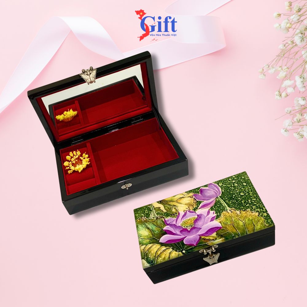 Lợi Ích Khi Sở Hữu Hộp Đựng Trang Sức Sơn Mài Sen Hồng Tím Nền Xanh