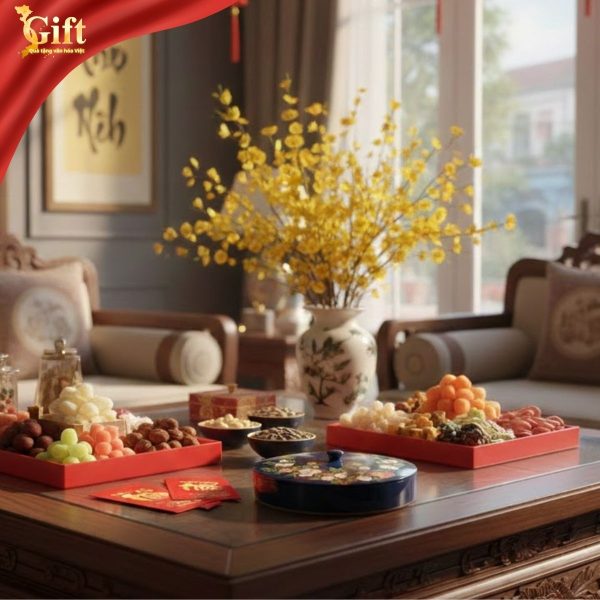 - Trưng bày trên bàn tiếp khách ngày Tết