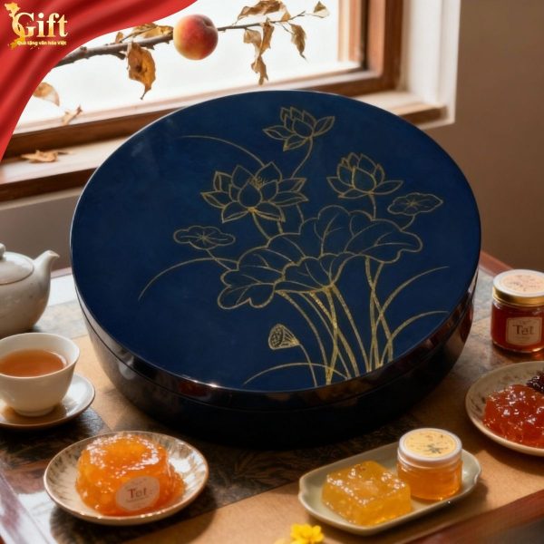 Phần lòng hộp được xử lý gọn gàng, dễ lau chùi, phù hợp đựng các loại mứt, hạt khô, bánh truyền thống – đáp ứng cả yếu tố thẩm mỹ lẫn công năng.