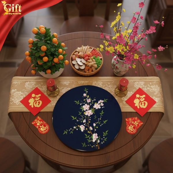 NỀN SƠN MÀI XANH – VẺ ĐẸP THANH NHÃ CHO KHÔNG GIAN TẾT