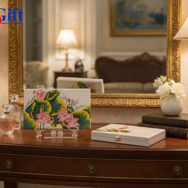 Chiếc hộp trang sức sơn mài hoa sen không chỉ là nơi cất giữ những vật phẩm quý giá, mà còn là biểu tượng của sự tinh tế và sang trọng.