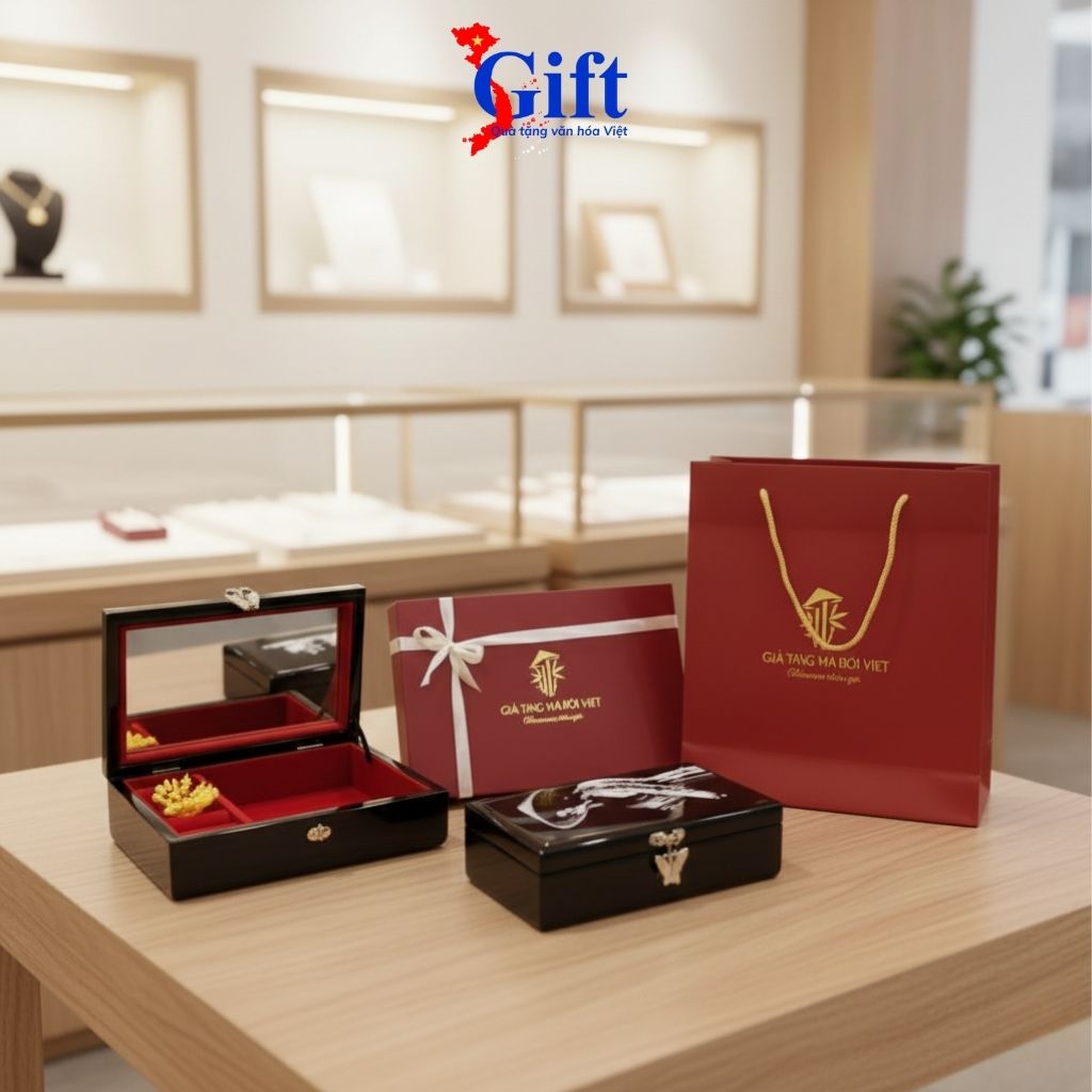 Hộp đựng trang sức sơn mài không chỉ là vật phẩm tiện ích mà còn là món quà văn hóa tinh tế, phù hợp cho đối tác, khách hàng nữ hoặc quà tặng ngoại giao.