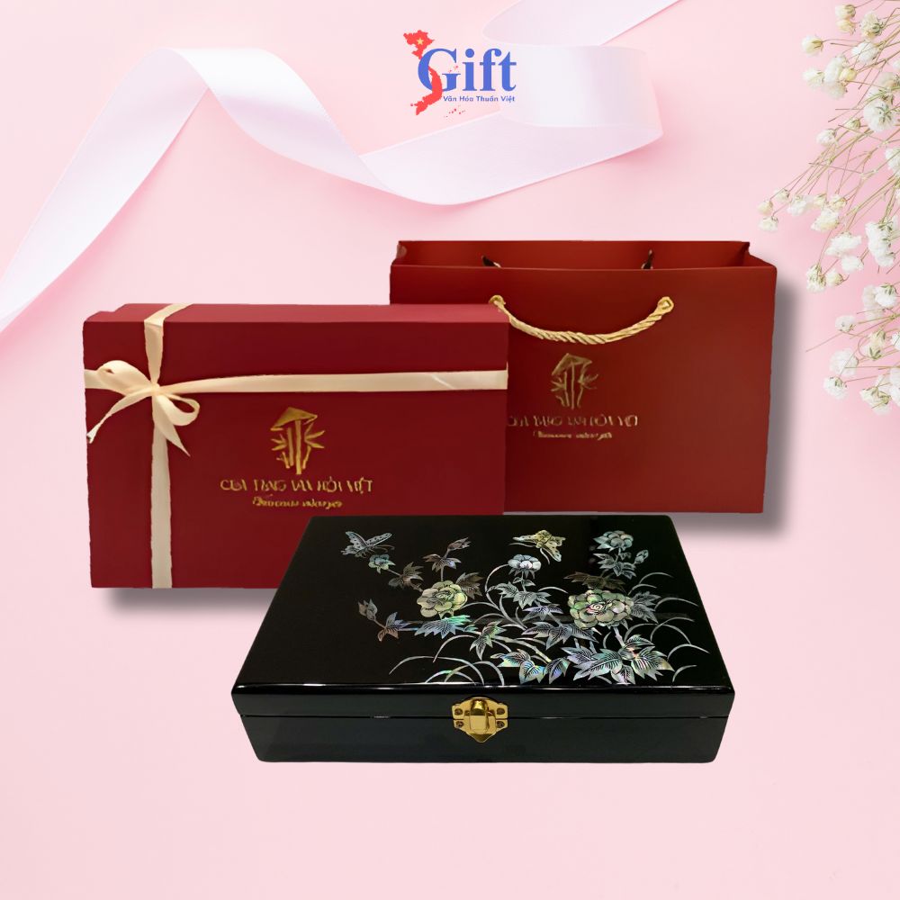 Mỗi chiếc hộp đều trải qua quá trình chế tác công phu, từ việc phủ từng lớp sơn mài đến việc khảm từng mảnh trai một cách khéo léo. Họa tiết tiết lộ trên nền sơn mài bóng bóng không chỉ phản chiếu ánh sáng đẹp mắt mà còn tôn lên sự sang trọng và độcg của sản phẩm. Đây là món đồ lý tưởng để lưu trữ trang sức quý giá, đồng thời là biểu tượng điểm nhấn trong không gian sống.