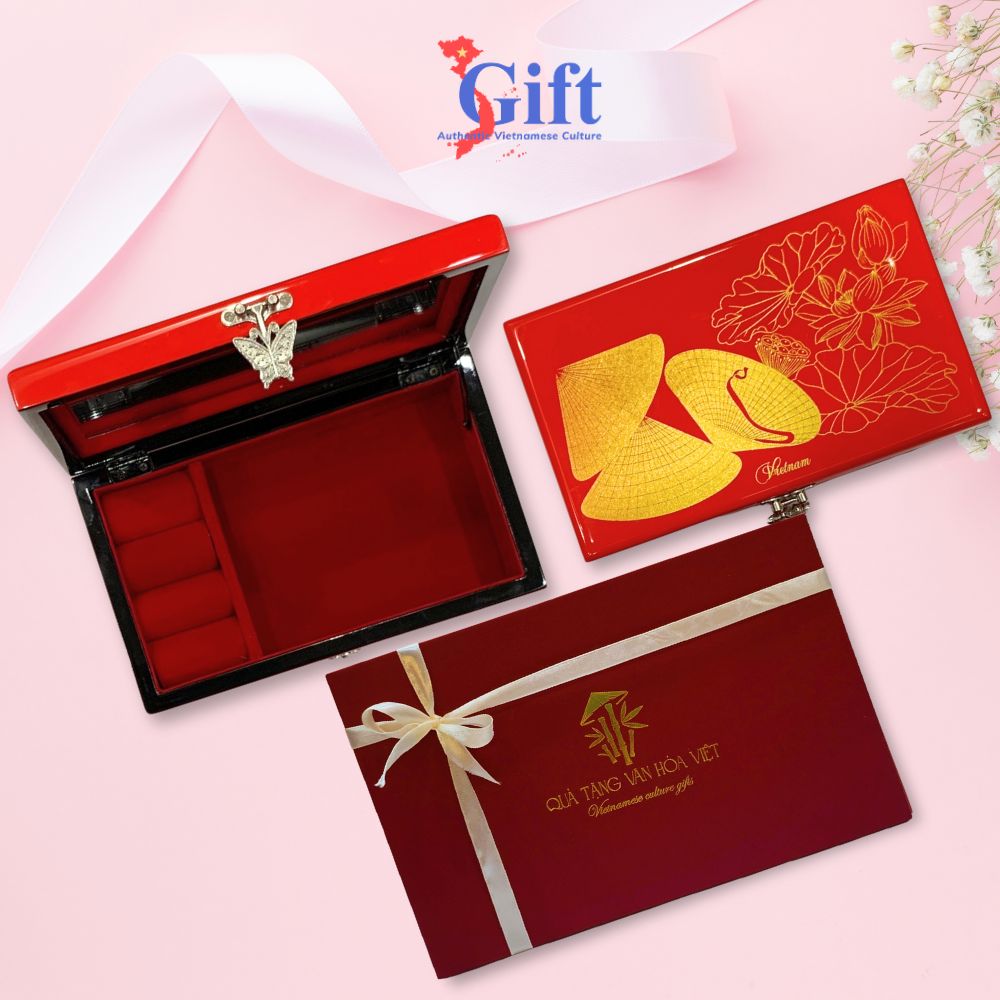 Hộp trang sức sơn mài màu đỏ vẽ hoa sen không chỉ là nơi lưu giữ những món đồ trang sức quý giá mà còn là một món quà mang ý nghĩa văn hóa sâu sắc. Thiết kế tinh tế, chất liệu cao cấp và tay nghề thủ công công hoàn hảo sẽ trở thành món quà tặng hoàn hảo cho những dịp đặc biệt.