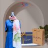 Bộ Quà Tặng Khăn Lụa Vẽ Chợ Bến Thành Màu Xanh Lam & Hộp Trang Sức Đen SGPT70180/10.4