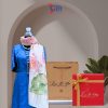 Khăn Lụa Tơ Tằm Vẽ Chợ Bến Thành Màu Xanh Da Trời - Hộp Đỏ & Túi Quà Tặng SGPT70180/10.4