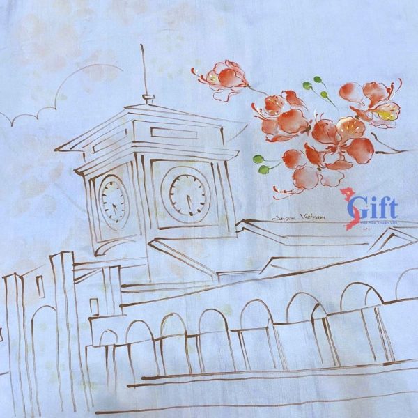 Khăn Lụa Tơ Tằm Vẽ Chợ Bến Thành Màu Xanh Da Trời - Hộp Đỏ & Túi Quà Tặng SGPT70180/10.4						 Khăn Lụa Tơ Tằm Vẽ Chợ Bến Thành - Màu Cam & Hộp Đỏ Túi Quà Tặng SGPT70180/10.4