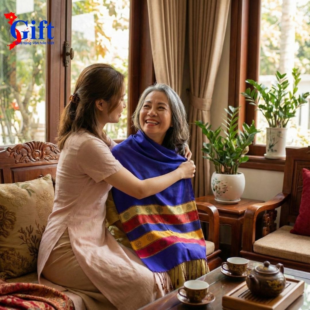 • Di sản lụa Vạn Phúc: Dệt từ tơ tằm 100% tại làng lụa Vạn Phúc ngàn năm tuổi. Chiếc khăn là tinh hoa văn hóa truyền thống, thể hiện sự sang trọng và quý phái.
