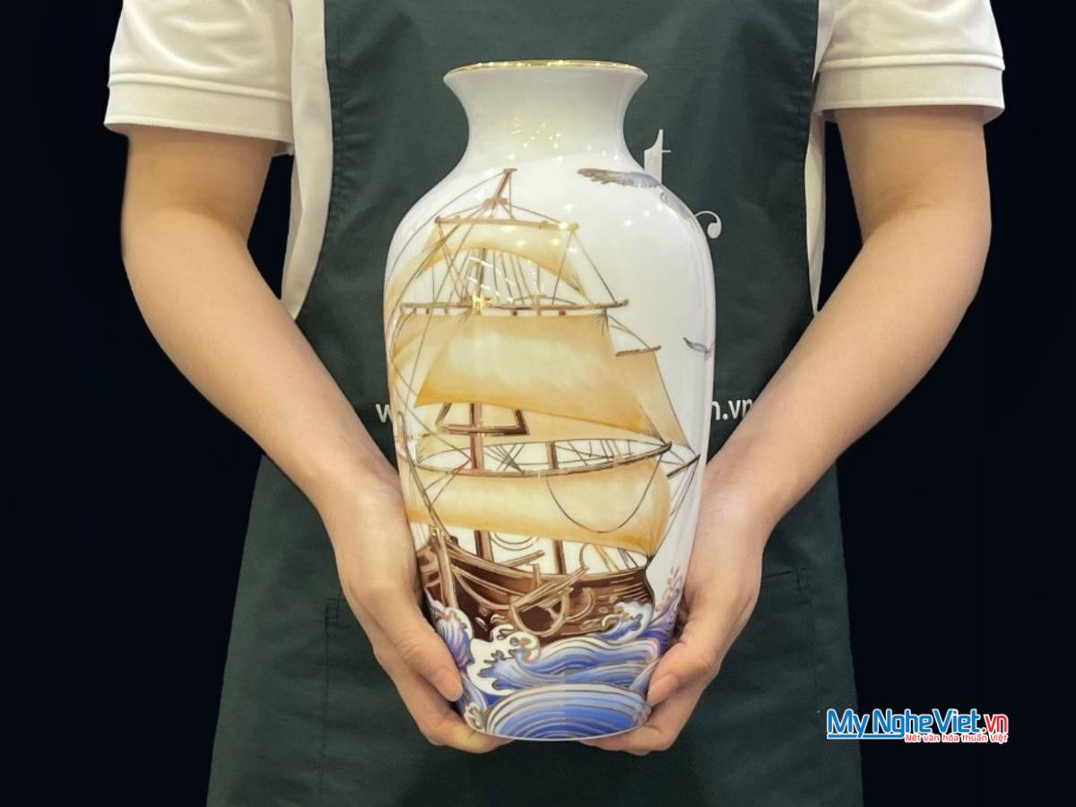 Mang đến sự kết hợp hoàn hảo giữa nghệ thuật truyền thống và ý nghĩa phong thủy tốt lành, bình hoa gốm sứ Bát Tràng vẽ cảnh Thuận Buồm Xuôi Gió là món quà tặng và vật trang trí không thể thiếu trong mỗi không gian sống. Sản phẩm không chỉ tôn vinh nét đẹp tinh hoa của làng gốm sứ Bát Tràng mà còn gửi gắm những lời chúc tốt đẹp nhất.