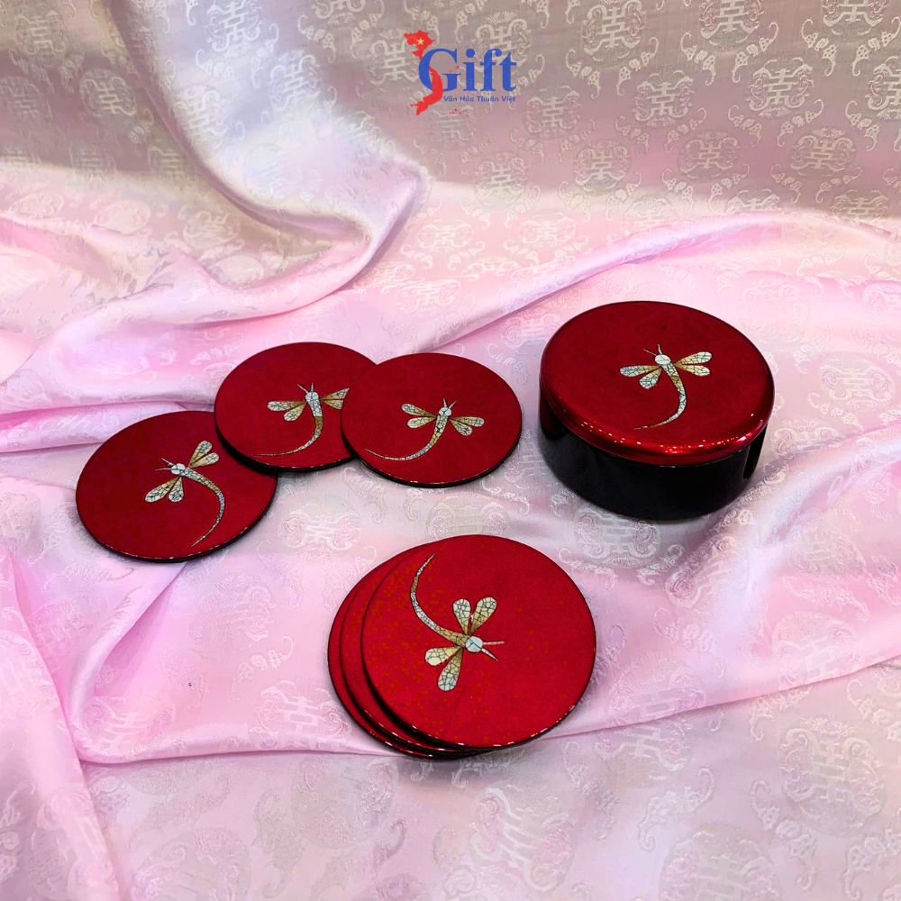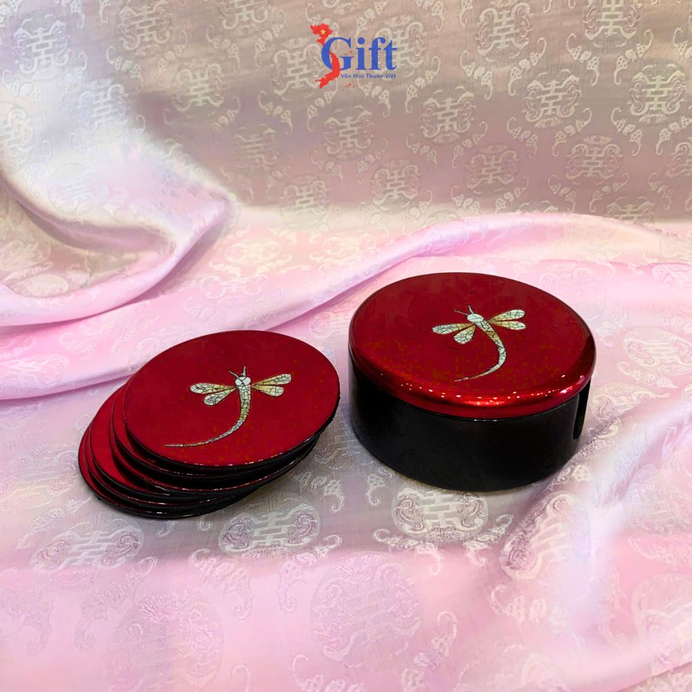 Lót ly sơn mài chuồn chuồn đỏ là một sản phẩm mang đậm giá trị văn hóa Việt Nam, kết hợp giữa kỹ thuật sơn mài truyền thống và họa tiết hoa chuồn chuồn độc. Sản phẩm không chỉ giúp bảo vệ bề mặt bàn mà còn là một trang trí tinh tế điểm nhấn, mang lại sự sống thiết yếu và nghệ thuật cho không gian sống.