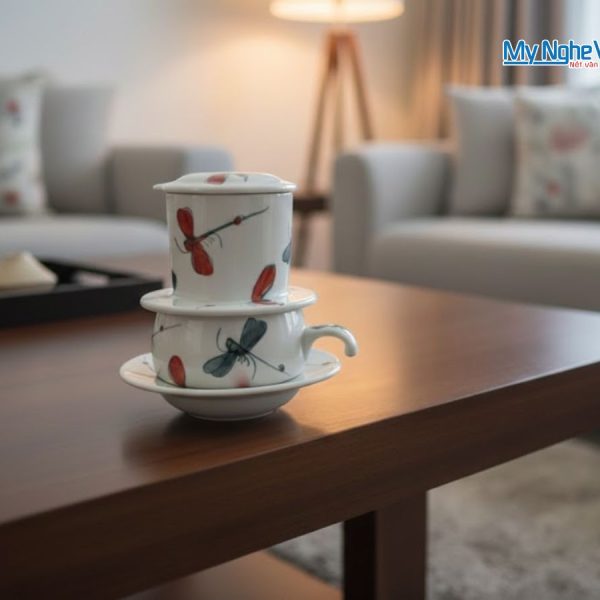 Sở hữu một chiếc phin cà phê thấp vẽ chuồn kim không chỉ giúp bạn có những ly cà phê thơm ngon đúng điệu mà còn làm tăng thêm giá trị thẩm mỹ cho không gian sống. Sản phẩm này có thể trở thành món đồ trang trí độc đáo trên bàn làm việc, kệ sách hay phòng khách.