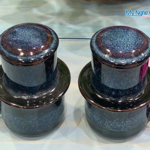 Điểm nhấn tạo nên sự khác biệt cho chiếc phin này chính là lớp Men Hỏa Biến Men Xanh độc đáo. Men Hỏa Biến là một kỹ thuật tráng men cổ truyền, nơi màu men thay đổi ngẫu hứng dưới tác động của nhiệt độ trong lò nung. Chính sự “biến hóa” này tạo ra những đường vân, mảng màu Men Xanh loang lổ, sâu lắng và hoàn toàn không trùng lặp, biến mỗi chiếc Phin cafe Men Hỏa Biến Men Xanh trở thành một tác phẩm nghệ thuật duy nhất.