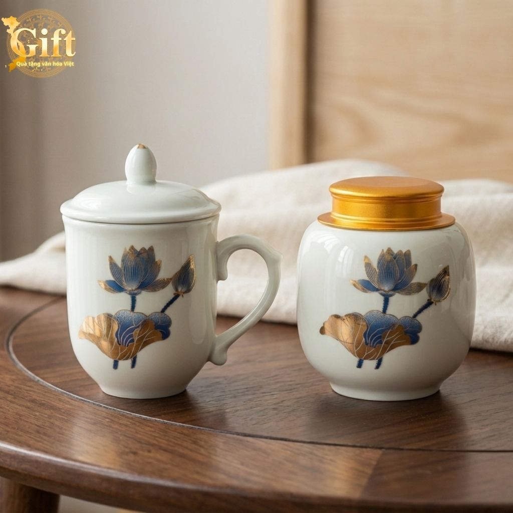 Tặng trà và dụng cụ pha trà là một nét đẹp lâu đời trong văn hóa Á Đông, thể hiện sự trân trọng và mong muốn gắn kết lâu dài. Set hũ đựng trà và ly lọc trà họa tiết Sen xanh không chỉ mang giá trị sử dụng mà còn gửi gắm thông điệp về sự tinh tế, bền vững và tĩnh tại.