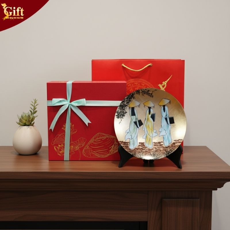 Tại sao nên chọn tranh dĩa sơn mài cô gái áo dài làm quà tặng?
