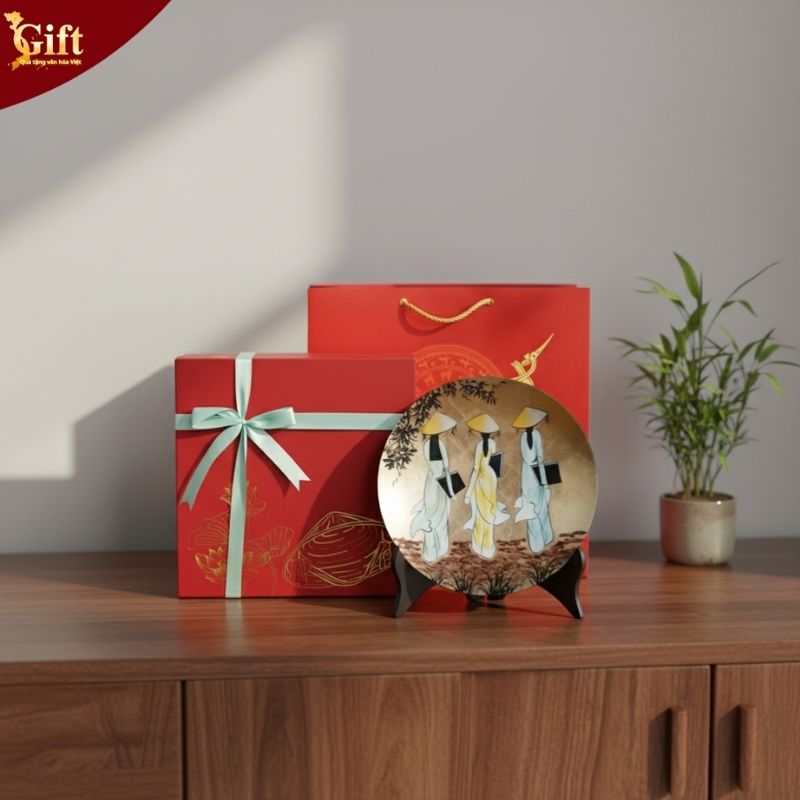 Tìm kiếm quà tặng đối ngoại vừa sang trọng vừa ý nghĩa không hề dễ dàng. Tranh dĩa sơn mài cô gái áo dài chính là câu trả lời hoàn hảo. Sản phẩm tôn vinh vẻ đẹp dịu dàng và tâm hồn người phụ nữ Việt Nam.