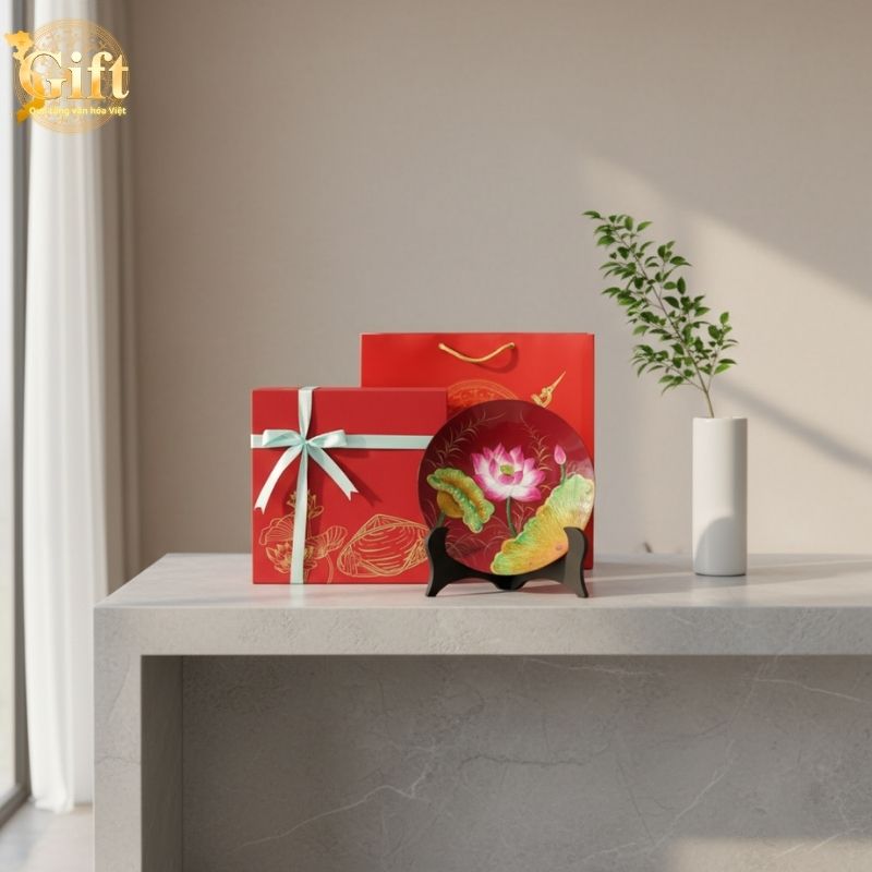 Làng nghề sơn mài kết hợp kỹ thuật truyền thống với công nghệ hiện đại, đảm bảo sản phẩm có độ bền cao và màu sắc không phai theo thời gian. Đây là minh chứng cho sự giao thoa giữa di sản và sáng tạo, làm nên giá trị độc đáo của tranh đĩa hoa sen nền đỏ từ Sgift.