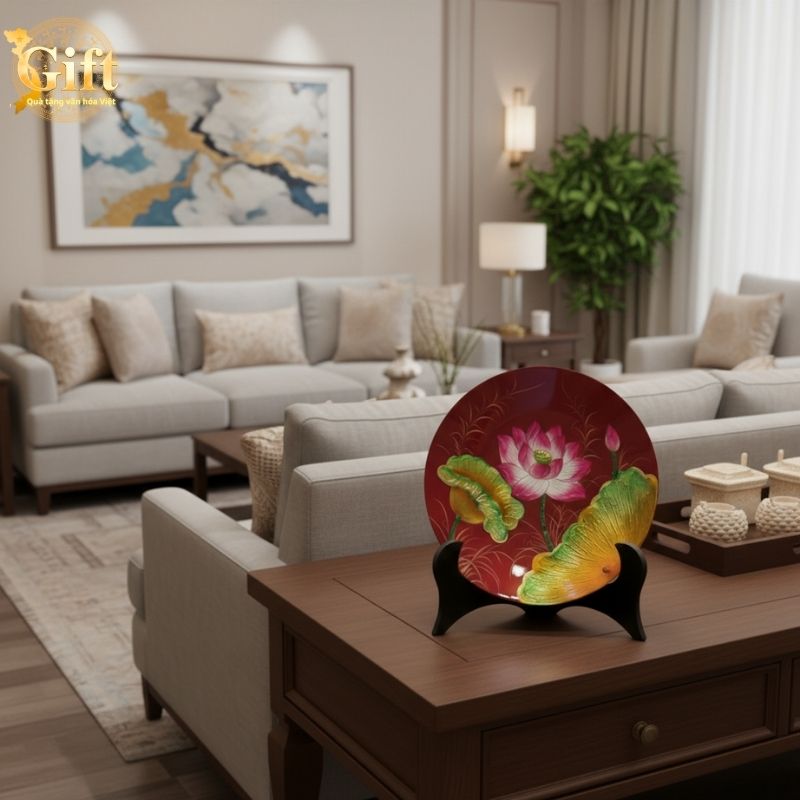Sở hữu tranh đĩa hoa sen nền đỏ từ Sgift, bạn không chỉ mang về một sản phẩm thủ công tinh tế mà còn góp phần bảo tồn văn hóa làng nghề Việt Nam. Sản phẩm có độ bền vượt trội nhờ chất liệu sơn mài cao cấp, phù hợp trưng bày trong phòng khách, văn phòng hoặc làm quà tặng đặc biệt trong các dịp lễ, Tết.