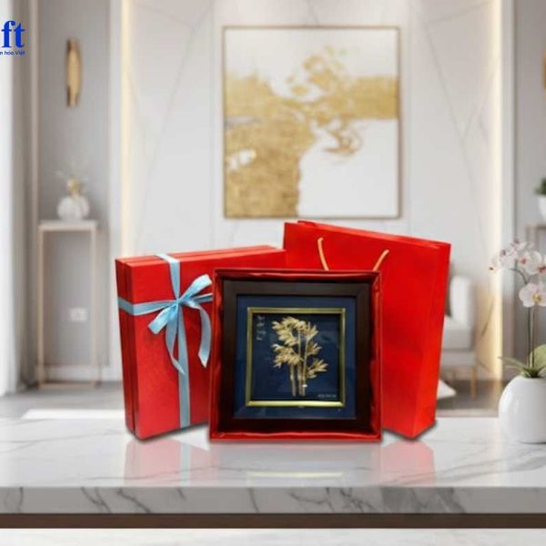 Sản phẩm được đóng gói cẩn thận trong hộp quà tặng sang trọng. Tranh Đồng Tre Trúc Dát Vàng 24K sẵn sàng trở thành món quà ý nghĩa trong nhiều dịp: