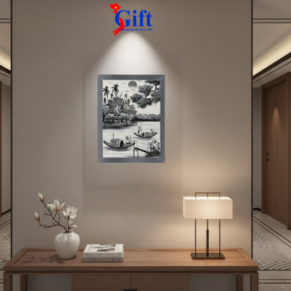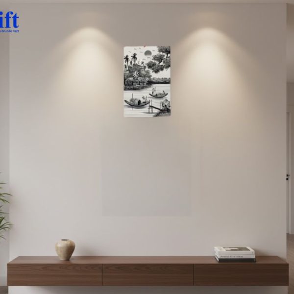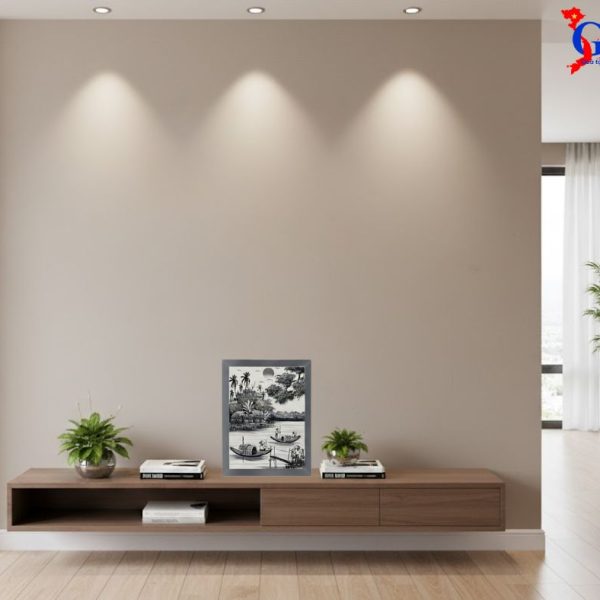 Tranh Sơn Mài Đồng Quê Trắng Đen SGTSM235 là sự giao thoa hoàn hảo. Sản phẩm kết hợp nghệ thuật sơn mài truyền thống với phong cách tối giản hiện đại. Bức tranh sử dụng tông màu trắng đen đơn sắc. Màu sắc này khác biệt so với các dòng tranh màu. Tranh tái hiện cảnh làng quê Việt Nam: thuyền chài, cây đa, bến nước. Hình ảnh được thể hiện rất tinh tế và giàu chiều sâu.