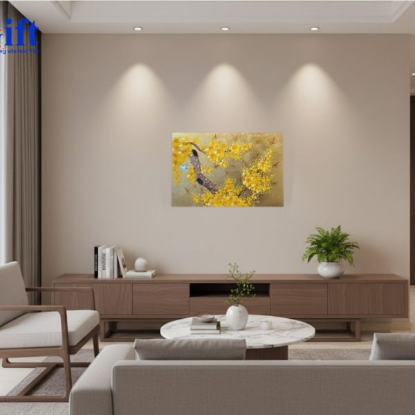 • Bộ sản phẩm bao gồm: 01 tranh hoa mai dát vàng