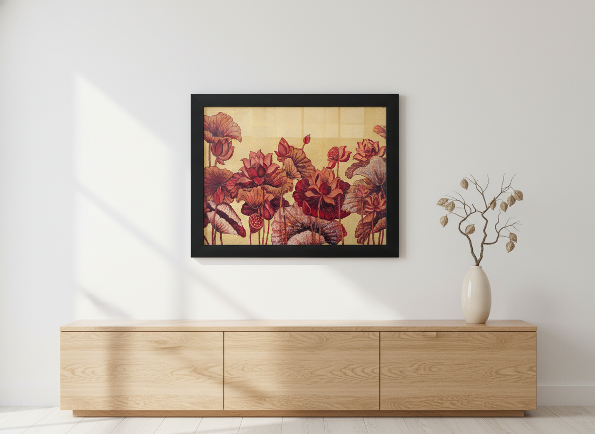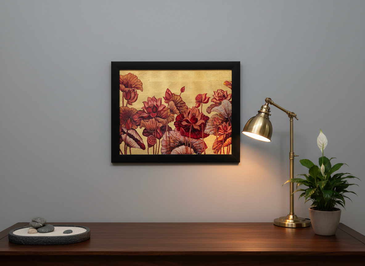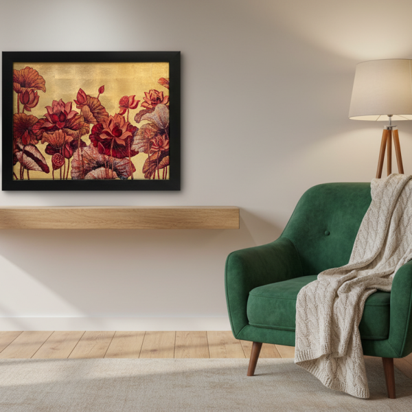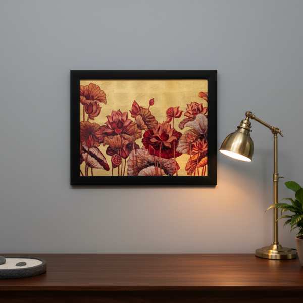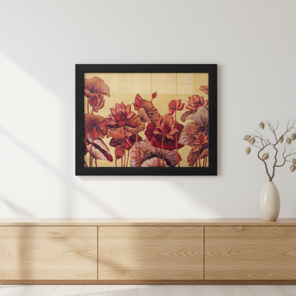 • Họa tiết: Hoa sen vẽ phong cách giả cổ.